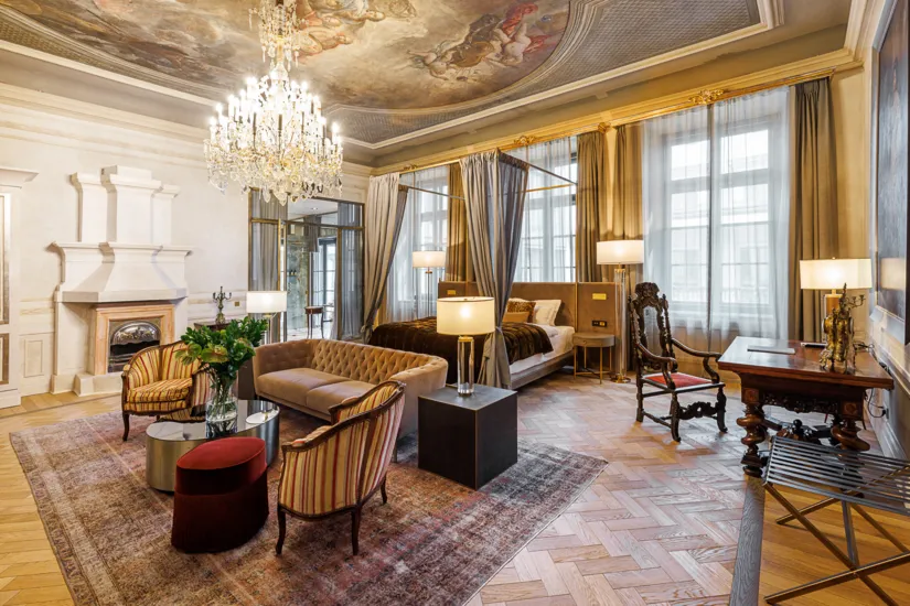 Architektura: Hotel mieści się w zabytkowym budynku Pałacu Lubomirskich, który powstał z połączenia czterech XVI wiecznych kamienic oraz nowo dobudowanej części. Wnętrza wykonane zostały z połączenia istniejących i odresturowanych elementów z nowymi materiałami, w których dominuje kamień, stal, mosiądz i szkło.
