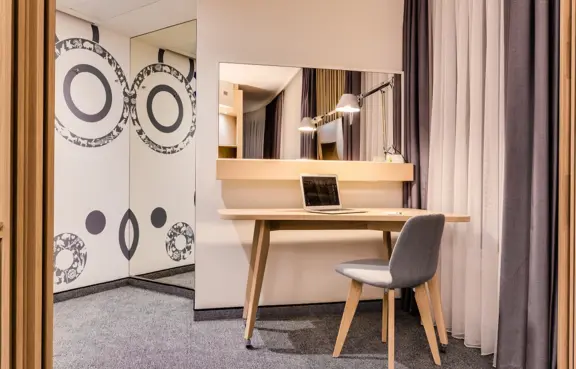 256 pokoi gościnnych o powierzchni od 16mkw do 35 mkw. Zlokalizowane na piętrach 2-16.