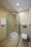 Każdy pokój posiada łazienkę z pełnym węzłem sanitarnym oraz telewizor.