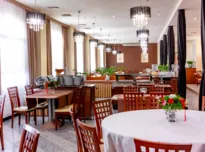 W hotelu czeka na Gości elegancka restauracja, słynąca z wyśmienitej i wyszukanej kuchni, a od wczesnej wiosny zapraszamy do wspólnego grillowania, pieczenia prosiaka i biesiadowania przy ognisku w pięknie zagospodarowanym otoczeniu przy oczku wodnym w ogrodzie o powierzchni 1 ha.