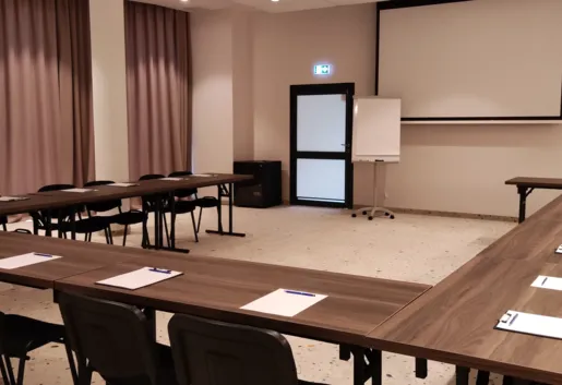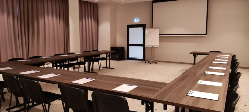 Bardzo komfortowa, klimatyzowana sala konferencyjna. Pomieści do 50 os. w zależności od ustawienia stołów oraz krzeseł.