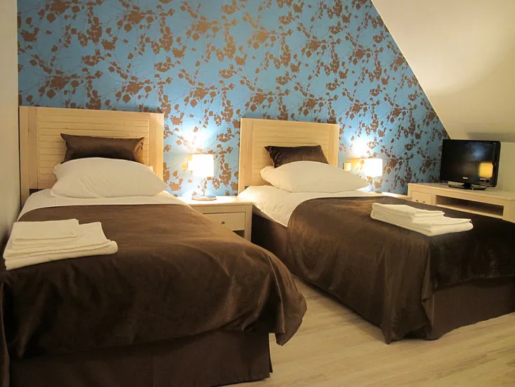 Około 100 miejsc noclegowych w 47 pokojach i apartamentach wyposażonych w klimatyzację, Internet, telefon, biurko oraz TV.