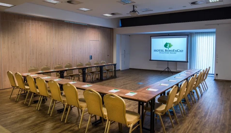 Sala A – sala konferencyjna o powierzchni 70 m² w Hotel BoniFaCio SPA & SPORT RESORT w miejscowości Sochocin.