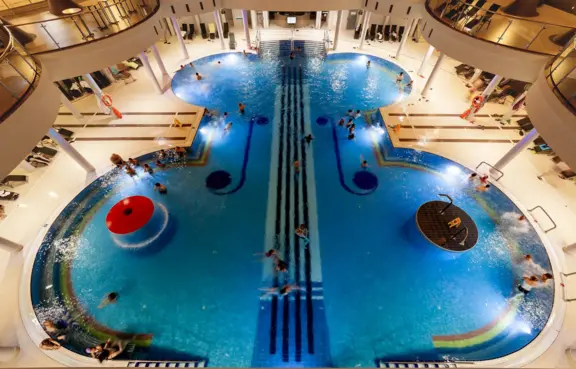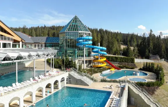 Obiekt oferuje szereg atrakcji sportowo-rekreacyjnych, w tym zespół basenów termalnych wewnętrznych i zewnętrznych.