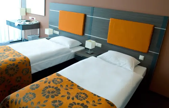 W zależności od potrzeb klienta zapewniamy pokoje typu Twin lub Double oraz dwa pokoje rodzinne typu studio, z dwiema dwuosobowymi sypialniami.
