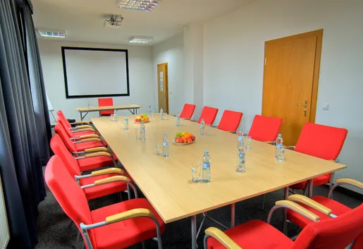 Sala Konferencyjna Kominkowa znajduje się na parterze. Ta klimatyzowana sala posiada naturalne światło dzienne z możliwością zaciemnienia. Wyposażona jest w nowoczesny sprzęt umożliwiający profesjonalne prowadzenie różnego rodzaju szkoleń czy konferencji: