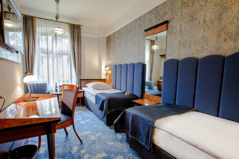 Pokoje: 82 miejsca noclegowe w 56 pokojach.