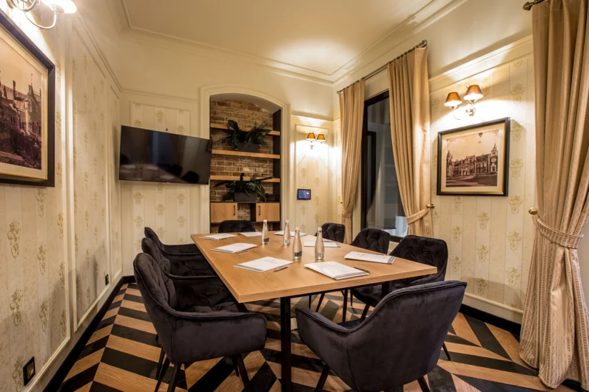 Może pomieścić na konferencję 8 osób w ustawieniu bankietowym.