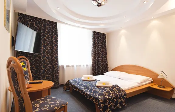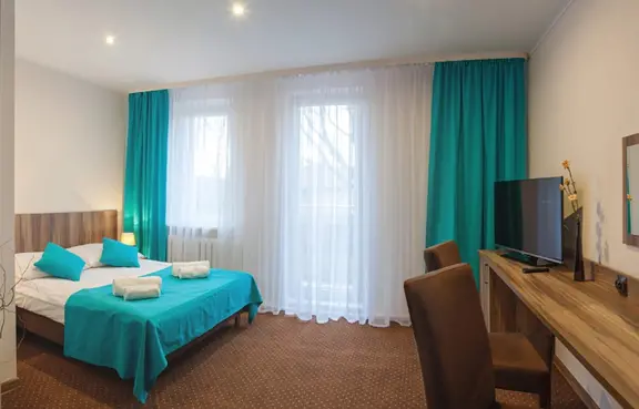 Dwugwiazdkowy hotel z 99 miejscami noclegowymi, 6 salami konferencyjnymi, restauracją, klubem oraz zapleczem rekreacyjnym z miejscem na piknik.