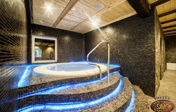 nowoczesną Strefę Wellness z jacuzzi, sauną suchą, łaźnią oraz strefą relaksu.