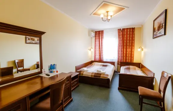 Dysponujemy 96 miejscami noclegowymi. Pokoje są przestronne i elegancko urządzone, wyposażone są w łazienki, TV, internet, telefon. Urządzone z klasą i smakiem klimatyzowane apartamenty spełnią oczekiwania nawet najbardziej wymagających Gości.