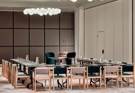 Sale konferencyjne: na parterze Mövenpick Grand Hotel Wrocław znajduje się przestrzeń o powierzchni 270 m kw., która pomieści do 143 osób. Mniejsza z sal - Board Room - ma powierzchnię 21 m kw.