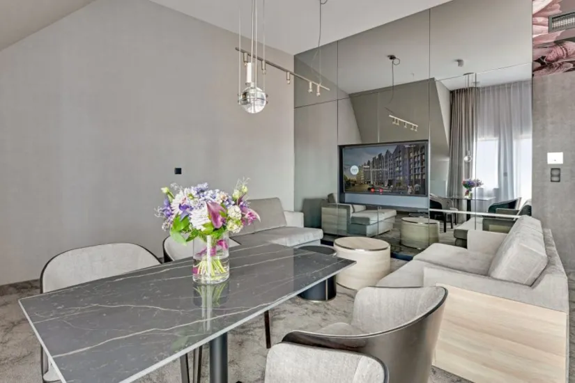 Inne: Goście mają do dyspozycji basen kryty, siłownię, 2 sauny, jacuzzi oraz spa z trzema gabinetami.