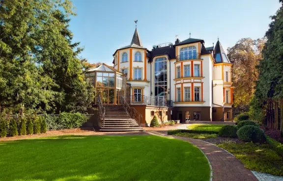 Dodatkowe usługi i atrakcje: Jedna z najlepszych restauracji we Wrocławiu, Oranżeria, dwa tarasy, ogród, pierwsza w Polsce Biblioteka Win (ok. 300 indeksów), bar, sauna, siłownia.