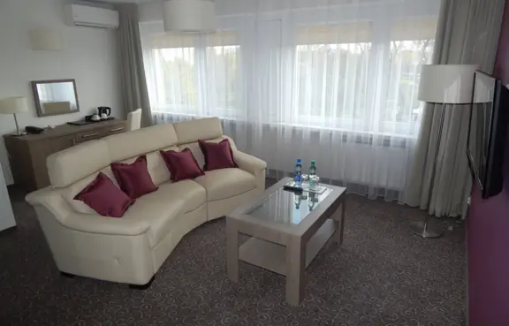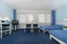 Zakwaterowanie: 212 pokoi w części 2* (dwa piętra) i 3* (dziesięć pięter), w tym: 94 pokoi 1-os. (w tym dwa dla osób niepełnosprawnych z opiekunami), 102 pokoi 2-os., 11 pokoi 3-os., 4 pokoje studio dla 4 osób i apartament – każdy z TV kablową oraz bezpłatnym dostępem do internetu.