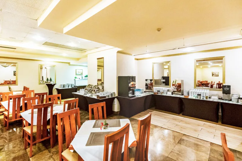 Restauracja hotelowa może pomieścić jednocześnie 200 osób i oferuje swoim Gościom bogate śniadania w formie bufetu oraz organizację cateringu na konferencje i wszelkie eventy.