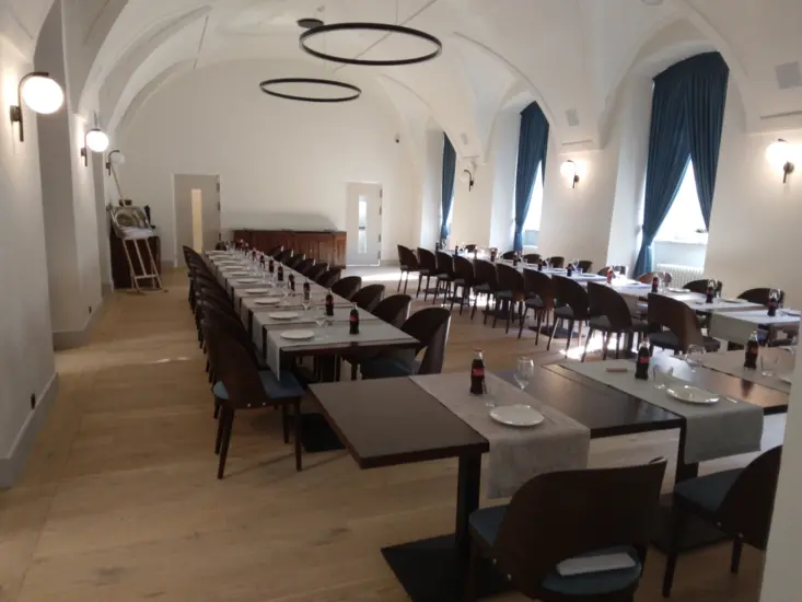 Klimatyczna sala wielofunkcyjna zaaranżowana we wnętrzu dawnego klasztornego refektarza, pozwala na organizowanie zarówno mniejszych konferencji, szkoleń, czy spotkań, jak też bankietów, uroczystych kolacji, czy rodzinnych imprez okolicznościowych.