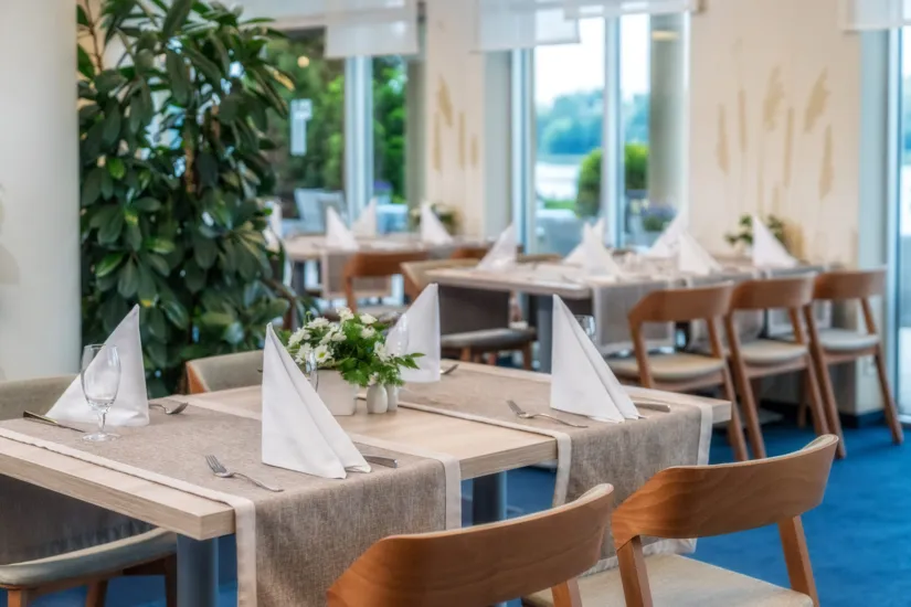 • Restauracja (na 150 miejsc) + letni taras z widokiem na Jezioro Maltańskie. Idealne miejsce na lunche biznesowe, jak i wystawne bankiety.
