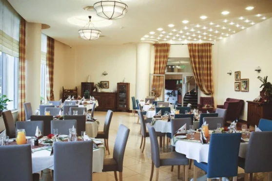 Gastronomia: na terenie hotelu działa restauracja z tarasem zewnętrznym.
