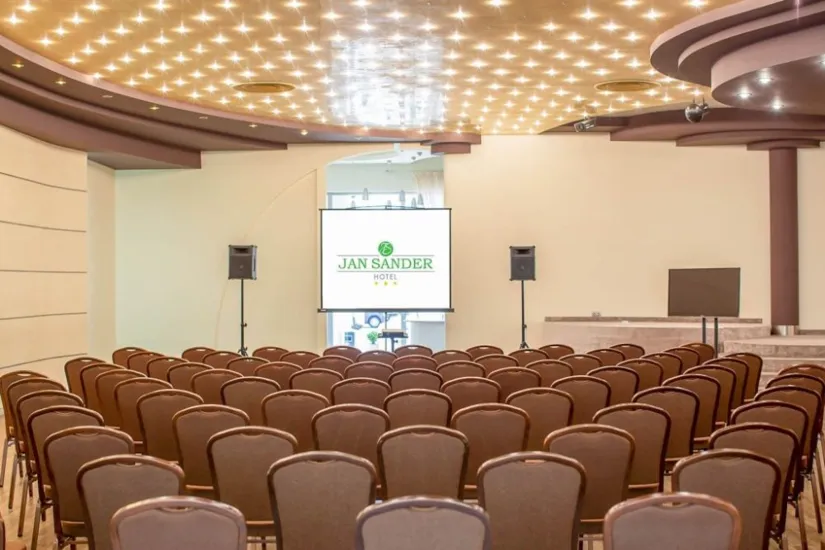 Sale konferencyjne: obiekt dysponuje 4 klimatyzowanymi salami konferencyjno-bankietowymi. Największa z nich podczas wydarzenia pomieści 420 osób w układzie teatralnym. Ofertę uzupełnia pokój konferencyjny dla maksymalnie 10 osób.