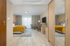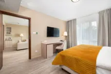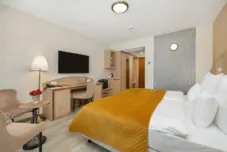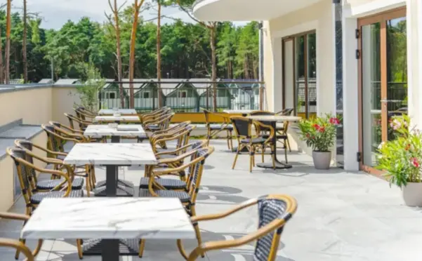 Dodatkowe usługi i atrakcje: SPA (8 gabinetów) i duża strefa wellness z dwoma basenami, sekcją wanien jacuzzi, dużym saunarium, grotą solną, tężnią, hammam i wypoczywalnią. Mamy też wyjątkowy, duży taras na dachu hotelu. Nad koronami drzew, z widokami po horyzont. Jak pokład statku wycieczkowego. Z odkrytym basenem. Idealny na evening party i innego rodzaju przyjęcia dla grup.
