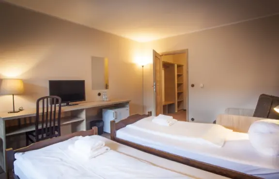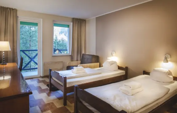 Pokoje: 290 miejsc noclegowych w 145 pokojach.