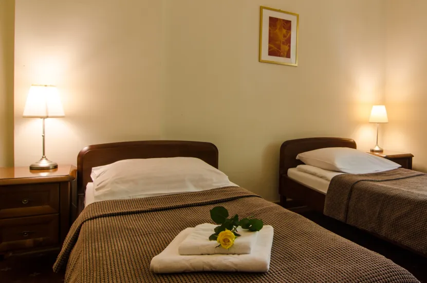 Hotel posiada 95 komfortowych miejsc noclegowych, w tym jedno-, dwu- i trzyosobowe pokoje oraz apartamenty