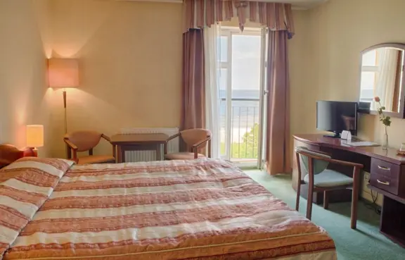 Obiekt oferuje 35 stylowych pokoi z widokiem na morze, saunę, restaurację oraz 2 sale konferencyjne o powierzchni 90 m kw. i 60 m kw.