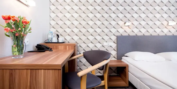 Standardowy pokój jednoosobowy z tradycyjnym wyposażeniem solidnego hotelu klasy business. Idealny na krótki pobyt w dobrych warunkach za rozsądną cenę! Komfortowe łóżka typu kontynentalnego (materac plus miękka baza)