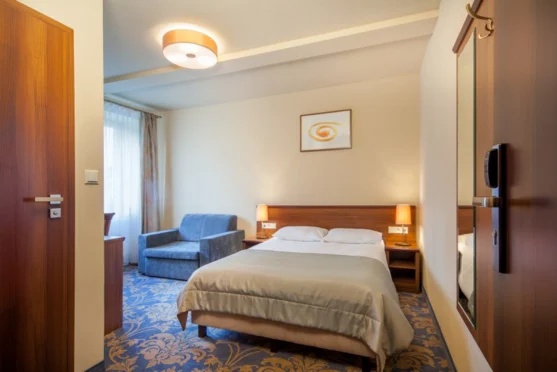 60 miejsc noclegowych w 26 eleganckich komfortowo wyposażonych pokojach oraz apartamentach.