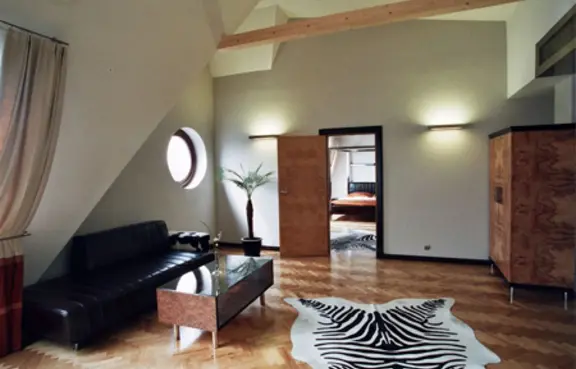 Około 200 miejsc noclegowych w 108 pokojach i apartamentach wyposażonych w TV, Internet, telefon i minibar.