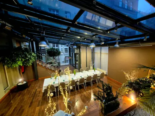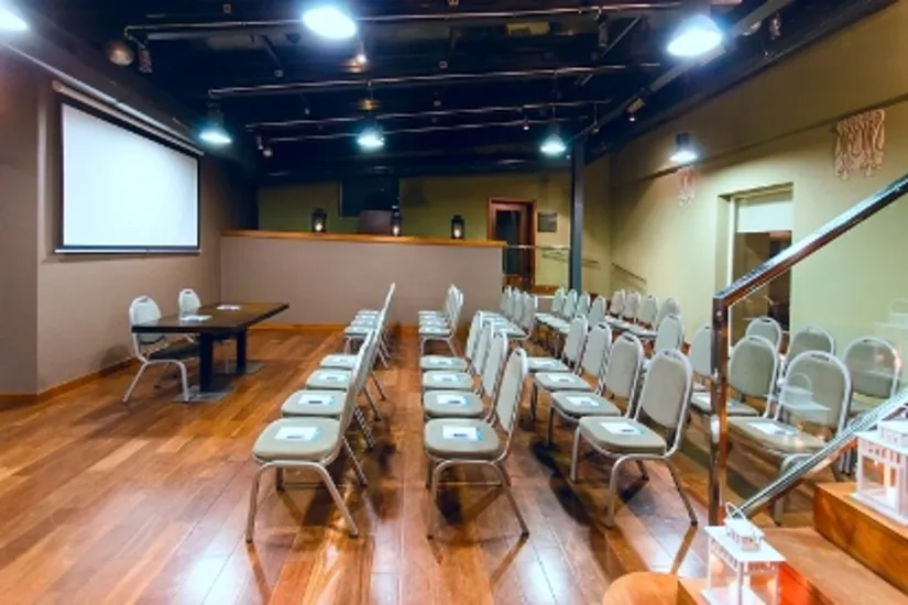 Sala usytuowana na półpiętrze Hotelu, posiada dostęp do światła dziennego. Pomieszczenie to jest idealne do organizacji warsztatów,spotkań firmowych oraz uroczystości okolicznościowych.