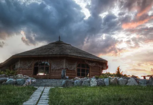 Najpopularniejsza opcja zamieszkania w hotelu Osada Karbówko. Chaty pod strzechą. Posiadamy 6 takich chat, każda z nich to dwie niezależne izby dla 5 osób.