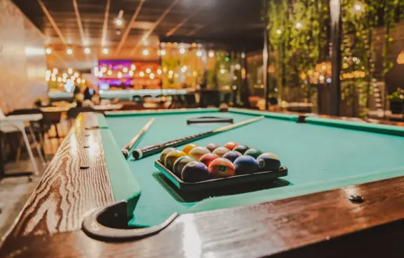 ✔ Strefę rozrywki z nowoczesną kręgielnią (4 tory), 3 stołami bilardowymi i strefą gier retro – klasyczne automaty, cymbergaj, rzutki.