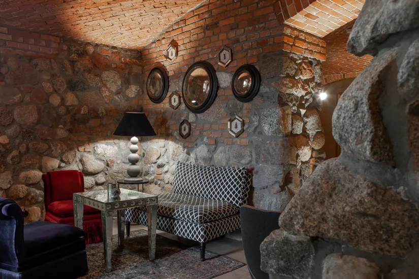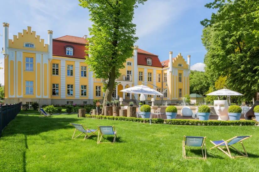 Ekskluzywny kompleks pałacowo-parkowy z XVIII wieku. Wystrój pałacu jest nawiązaniem do książki Alicja w Krainie Czarów, a autorką projektu jest Magda Czauderna.