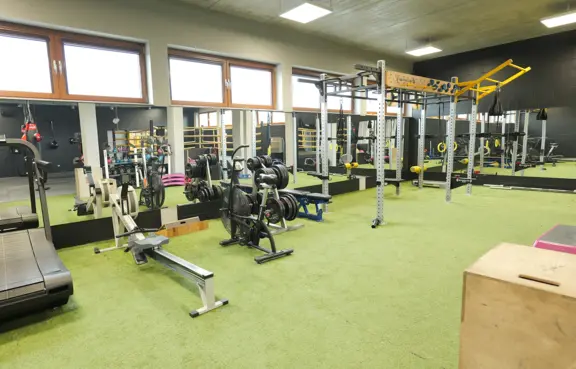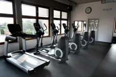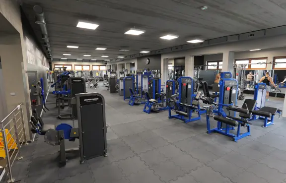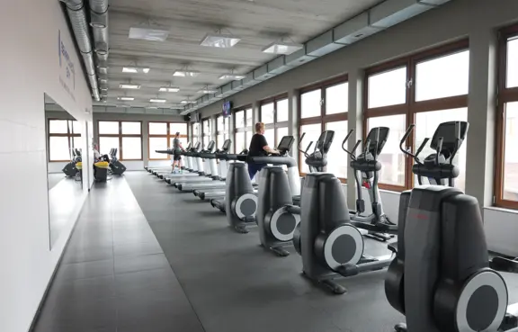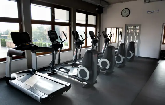 nowoczesnej siłowni BEHAPOWIEC GYM, mieszczącej się w budynku hotelowym, z pełnym wyposażeniem siłowym i strefą cardio.