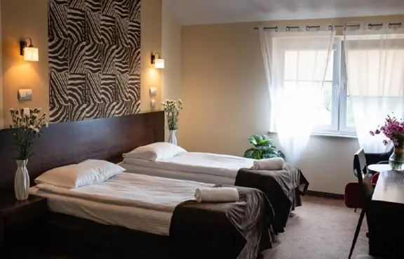 Pokoje: hotel oferuje 28 pokoi w standardzie dwugwiazdkowym, w tym 2 apartamenty Deluxe, oraz 17 pokoi gościnnych.