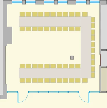 Czysta, ascetyczna forma, szaro-siwo-białe kolory, ciemnoszary sufit, beton architektoniczny, kanały wentylacyjne celowo widoczne, a do tego czarno białe industrialne zdjęcia z procesu budowy Antonińskiej. Sala ma swój niepowtarzalny klimat.