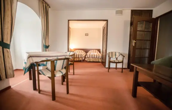 Pokoje: 65 miejsc noclegowych w 23 pokojach i apartamentach.