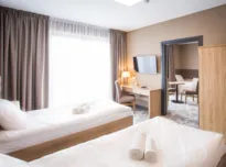 Atrakcje: Goście mogą również korzystać ze strefy SPA. Znajdują się tam m.in. jacuzzi, sauny sucha i parowa, gabinety odnowy biologicznej. Na terenie hotelu znajduje się również profesjonalnie wyposażona siłownia.