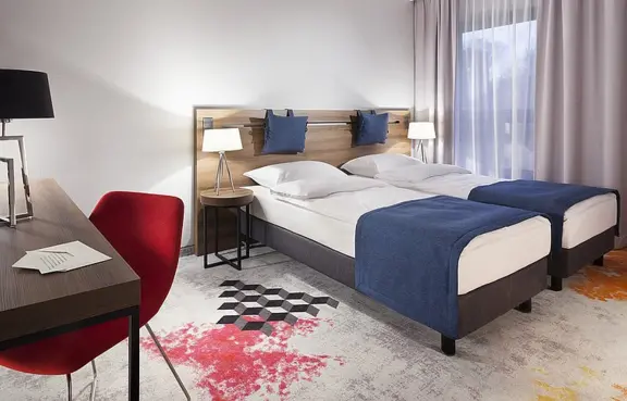 Pokoje: Goście mają do dyspozycji 164 nowocześnie wyposażone pokoje. W pokojach jest łazienka, biurko, dostęp do Wi-Fi, telewizor.