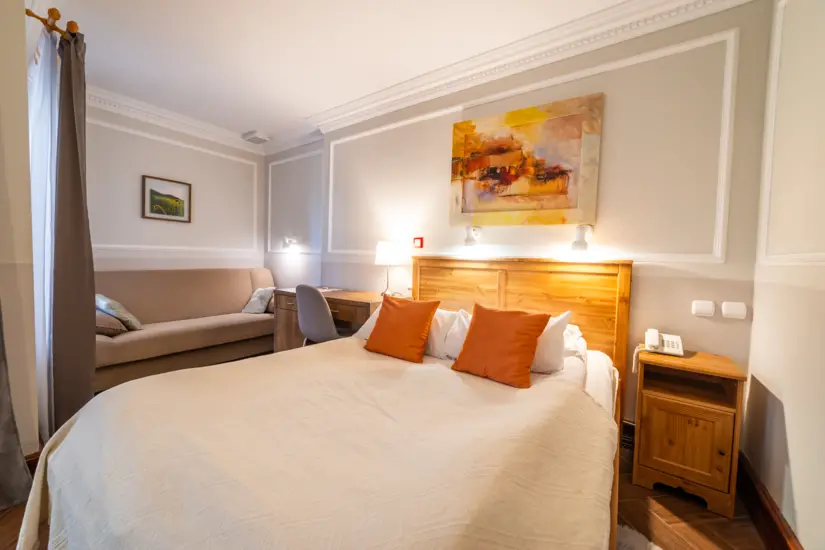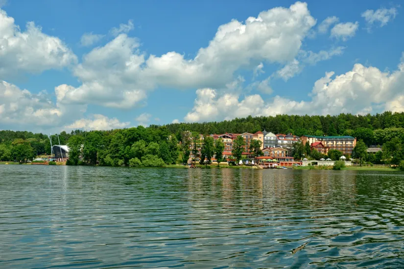 Komfortowy nocleg – eleganckie pokoje i apartamenty z widokiem na jezioro lub las.