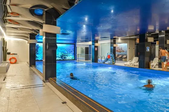 W cenie noclegu Aqua Centrum: basen ze zjeżdżalniami wodnymi, wodna strefa dla dzieci, łaźnia parowa, infra sauna, sauna sucha z codziennymi seansami zapachowymi, jacuzzi, 4-torowy bowling, squash, bilardy, zajęcia fitness, tenis stołowy, Studio Cardio z urządzeniami TechnoGym.