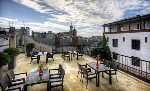 2 restauracje oraz bar na tarasie hotelu z widokiem na Stare Miasto.