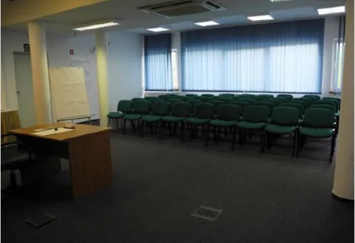 3 klimatyzowane sale konferencyjne mieszczące od 30 do 120 osób kinowo, wyposażone w Internet, flipchart, ekran, projektor i nagłośnienie.