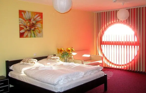 Na dwóch kondygnacjach nad salami znajdują się 23 pokoje hotelowe. W budynku obok znajduje się 17 pokoi i dodatkowo w budynku restauracji znajdują się 2 pokoje 3-osobowe. Wejścia do wszystkich trzech budynków znajdują się w promieniu 10 m od siebie. Każdy pokoj w budynkach może być także 1os.W budynku z 23 pokojami w każdym jest dodatkowa sofa rozkładana,duża o szer.130cm,dl.2m,tak wiec pokój
