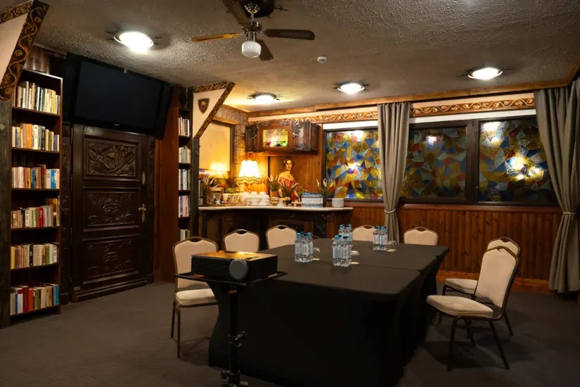 Może pomieścić na konferencję 20 osób w ustawieniu bankietowym i 25 osób w ustawieniu teatralnym.