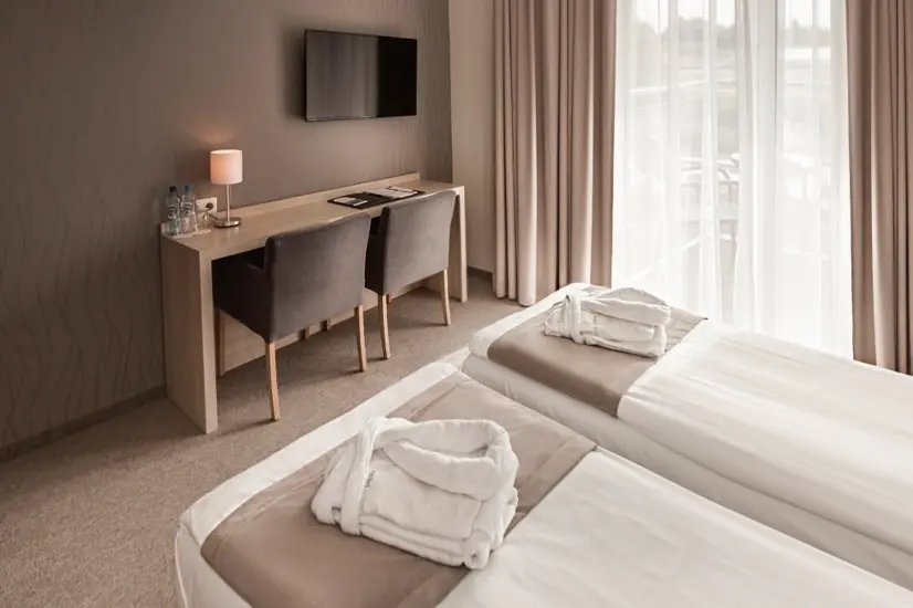 Inne: Basen rekreacyjny, sauna, wanny z wodą termalną, gabinety spa, bezpłatny parking, możliwość wynajęcia rowerów.