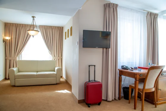 Pokoje: 31 pokoi, z których 16 znajduje się w części pałacowej, a 15 w dobudowanym Dworku.