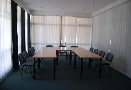 Na wyposażeniu sali jest zaciemnienie regulowane, dostęp do światła dziennego, nagłośnienie, scena / podest, brak kolumn, prąd - gniazdo trójfazowe, projektor, ekran wbudowany, flipchart.
